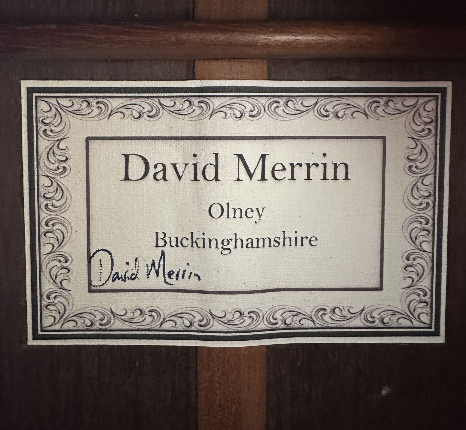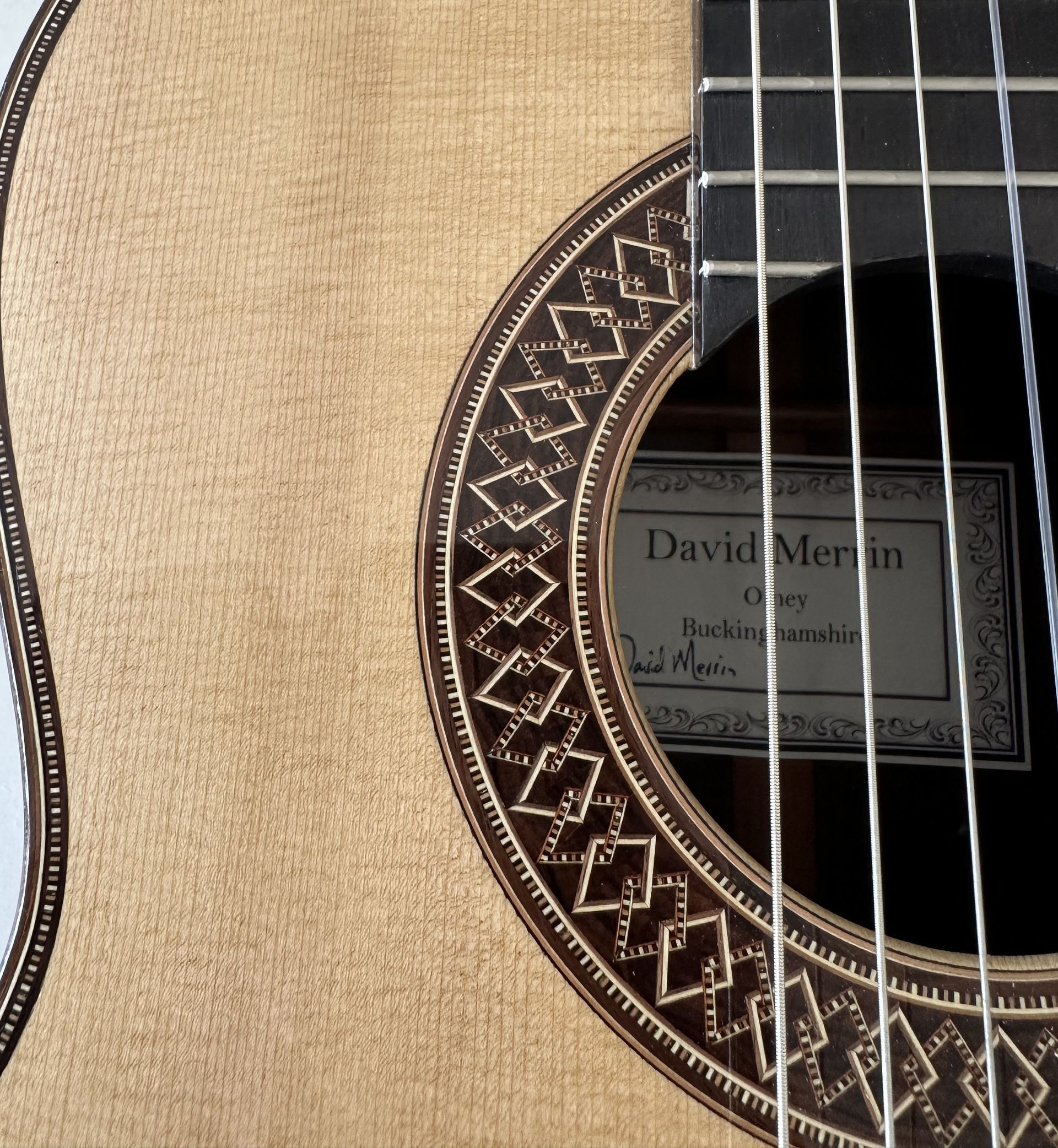 David is an accomplished player and skilled constructor of classical guitars, and one of the emerging second generation of top flight luthiers. He is one of only two luthiers in the world whose work is endorsed by Jose and Liam Romanillos. He produces only a few high quality guitars per year, concentrating on design and craftsmanship of the highest order. It's interesting that collectors who are reducing the number of their guitars always wish to hold on to a Merrin if they have one.