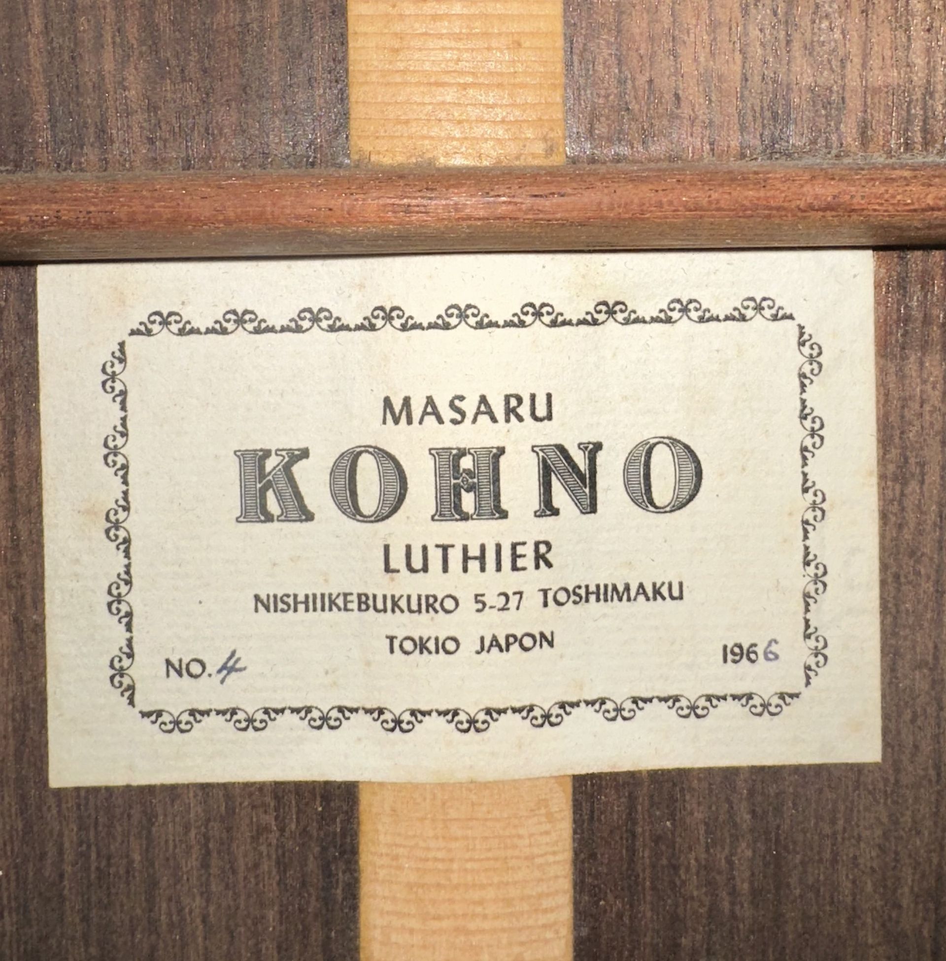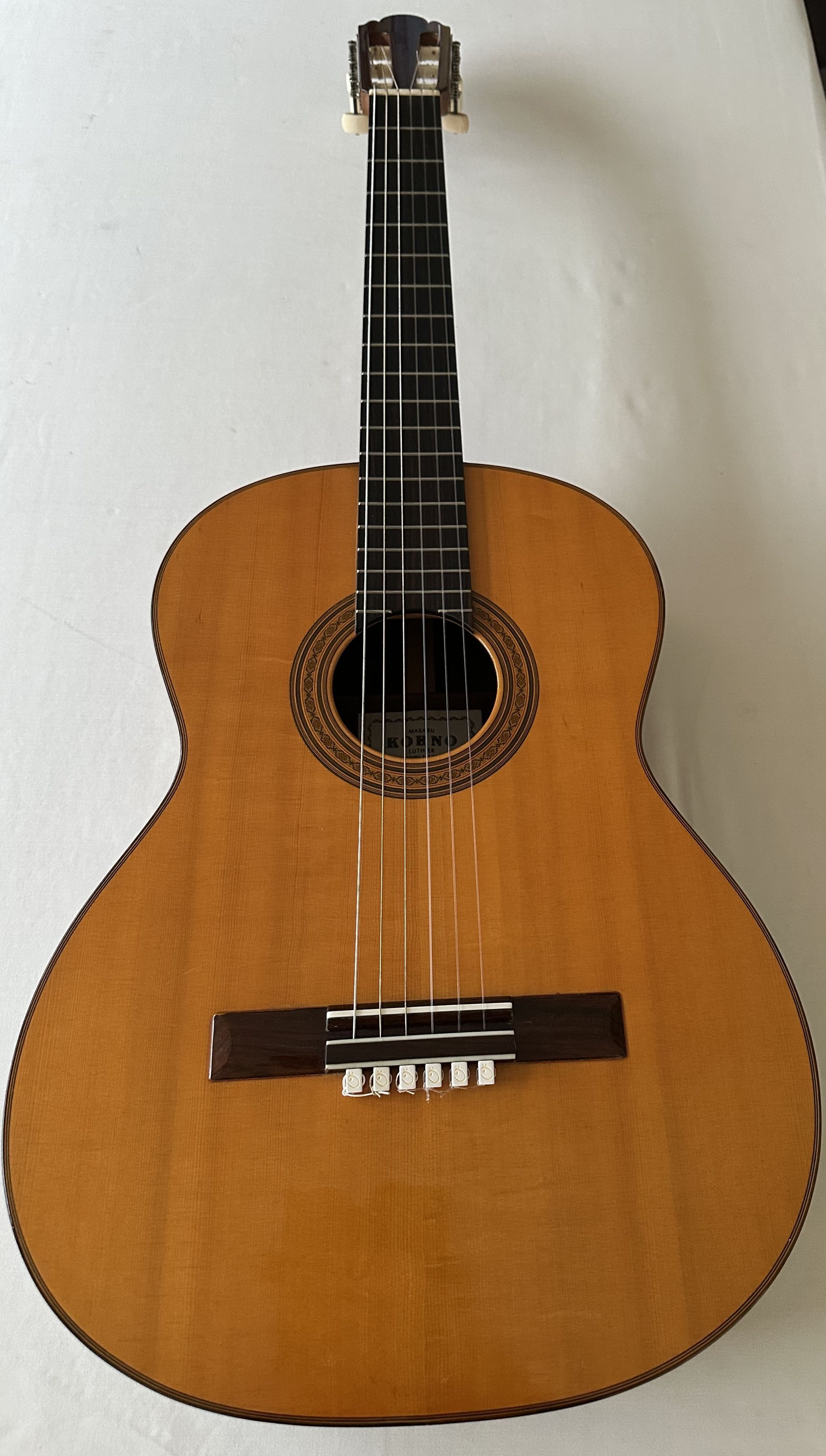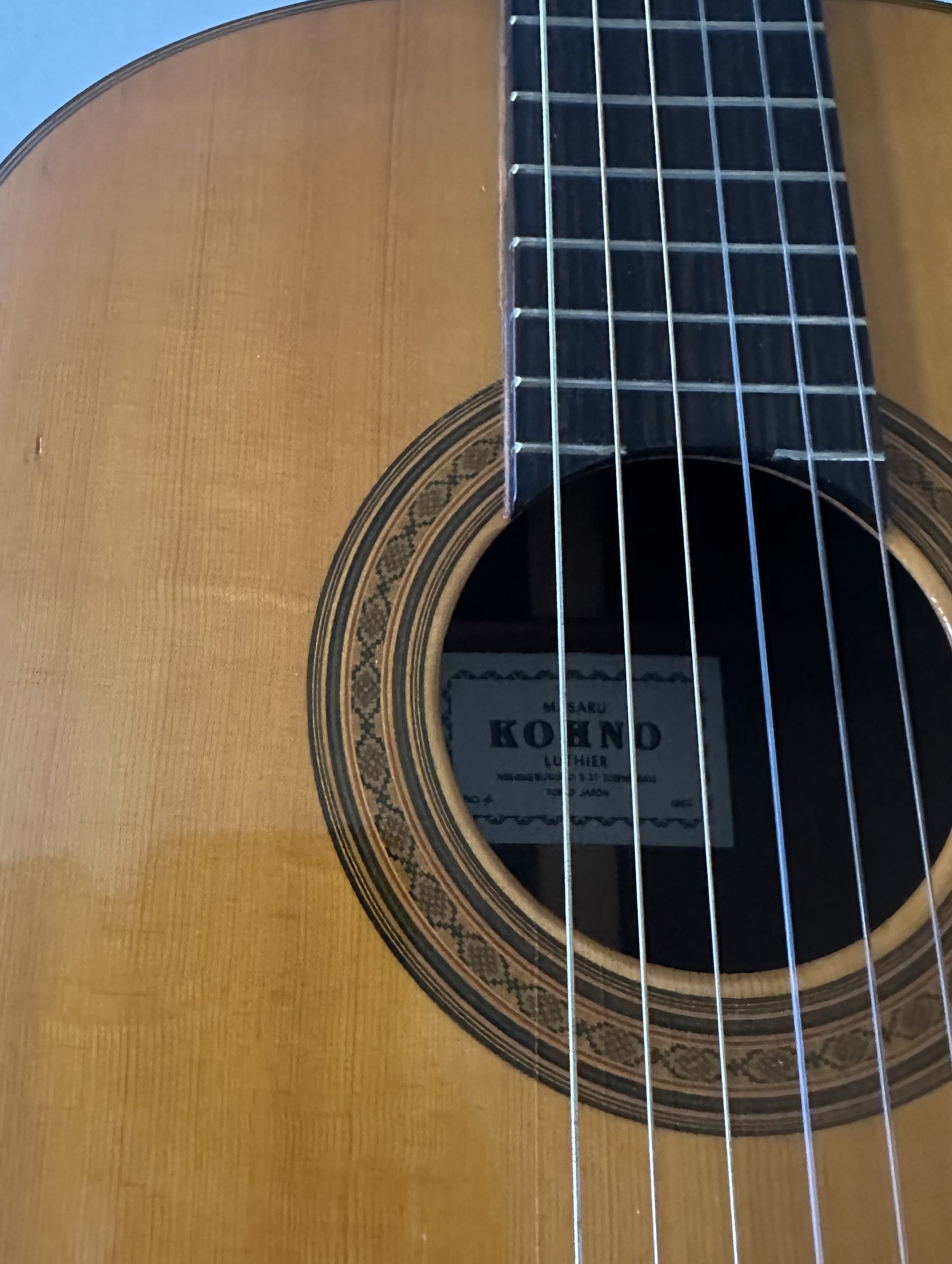 Masaru Kohno is probably the most celebrated luthier in the history of guitar building in Japan. He began his guitar building career in 1949 and developed his craft by sitting in the Madrid workshop of Arcangel Fernandez and noting his methods. After six months of observation in 1959/60, he returned to Tokyo to his workshop. He continued to develop his craft and the fact that one of his guitars was judged superior to that by Friederich and 31 other entrants in the 1967 Liege Concours National de Guitares with one of the judges, Ignacio Fleta saying that Kohno's guitar was very similar to his own, testifies to Kohno being a world class luthier. The workshop is now being run by So Kimishima, the grandson of Masaru Kohno. The workshop traditions are Kokoro (Heart), Waza (Craftsmanship) and Hibiki (Sound).