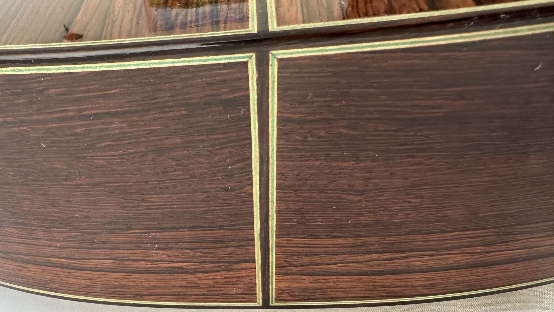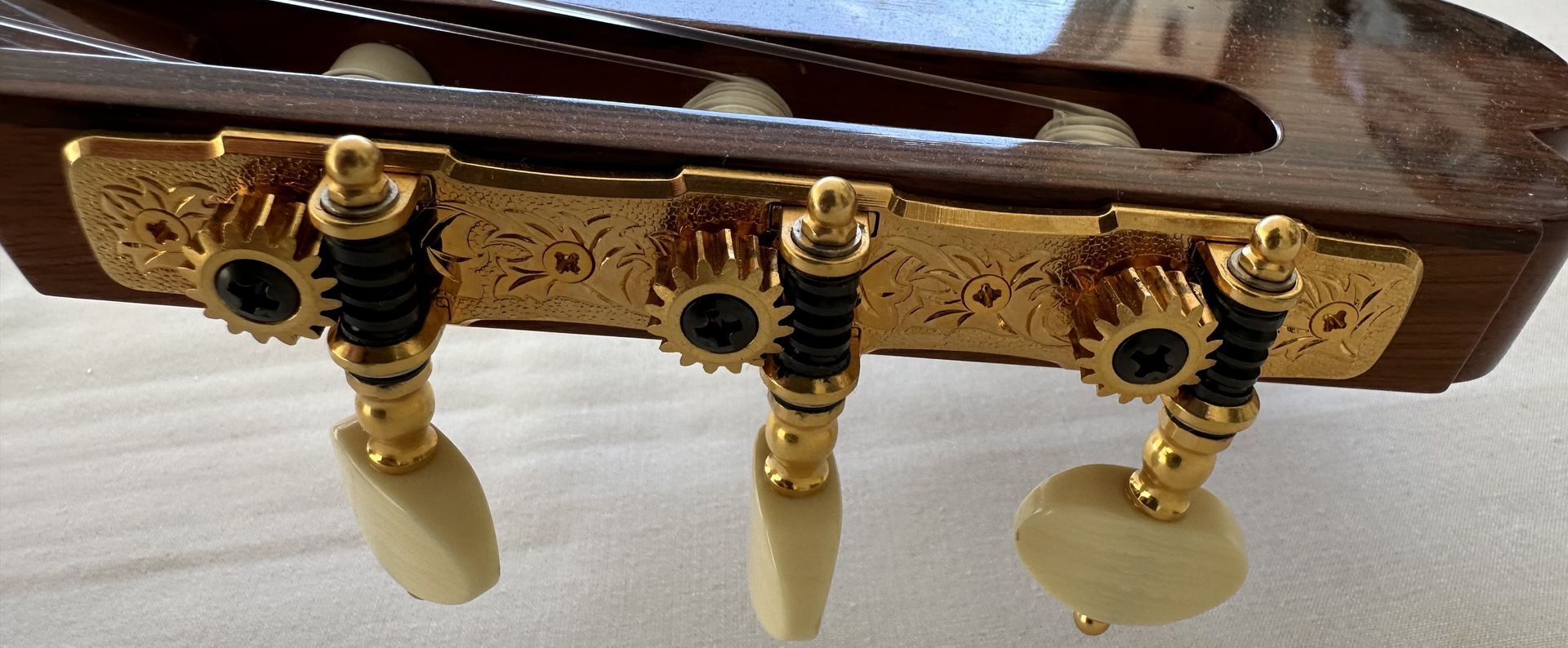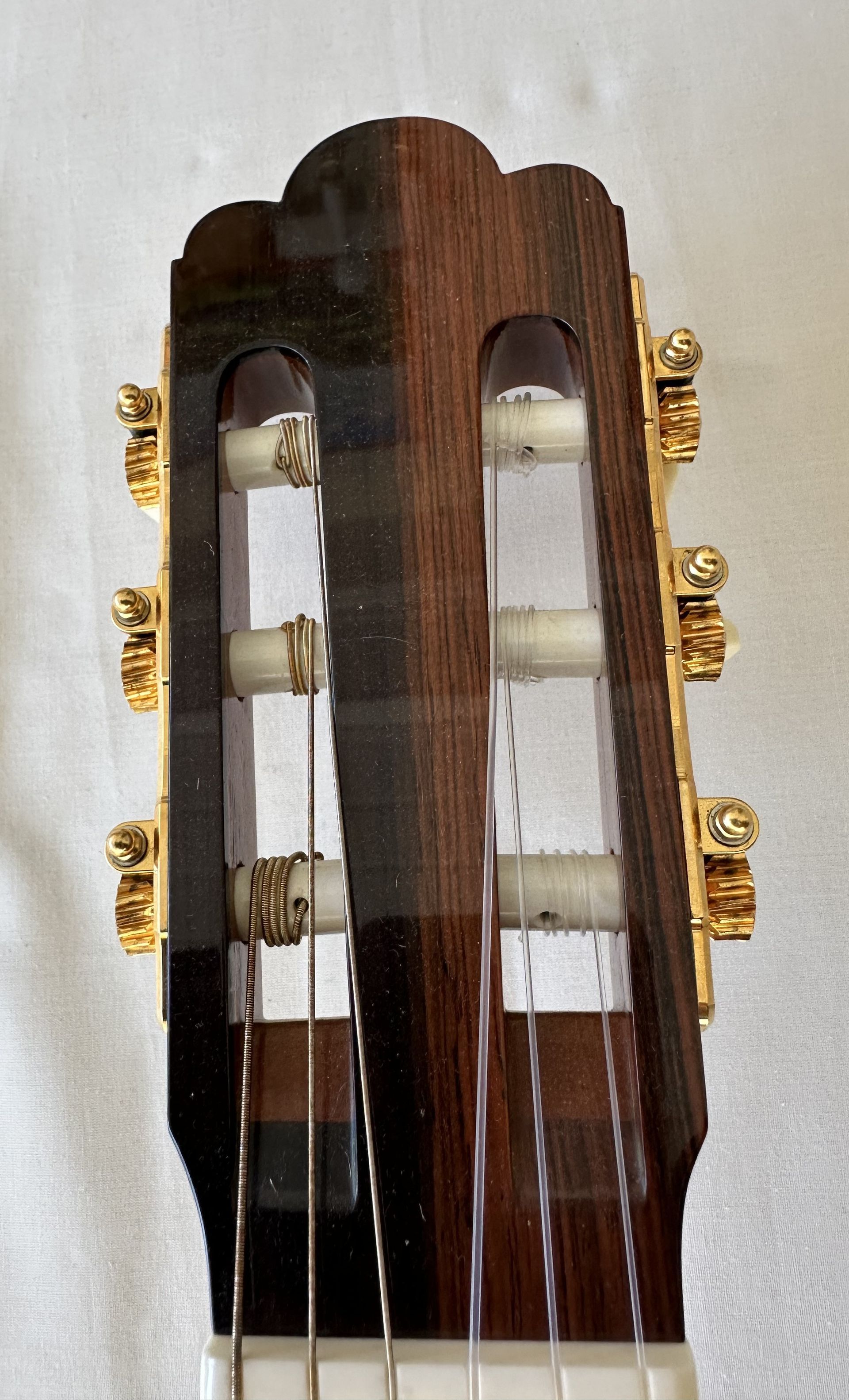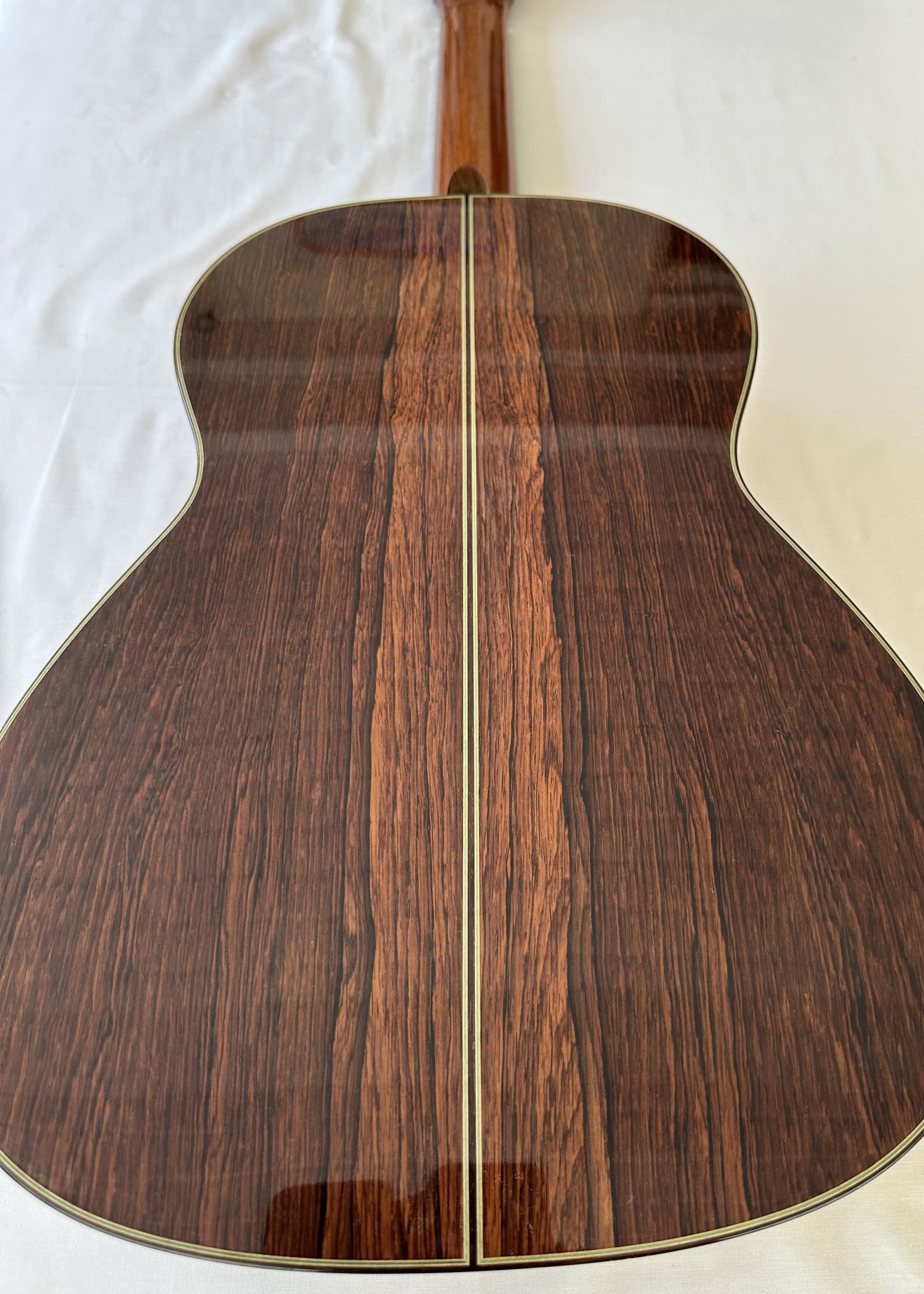 The guitar for sale is a Shunpei Nishino model 50 2002. It is in excellent condition and the Cashew polish finish shows hardly any signs of wear. In fact, given its age the guitar shows hardly any evidence of having been played. It has the normal 650mm scale and 52mm nut with a standard setting for the action at the 12th fret. The Rosewood back and sides are beautifully book-matched and are evidence of the high standards of build quality. The model 50 is Nishino's Hauser influenced model and reproduces the typical Hauser sound in consequence. It is an excellent example of a guitar which is seldom available.